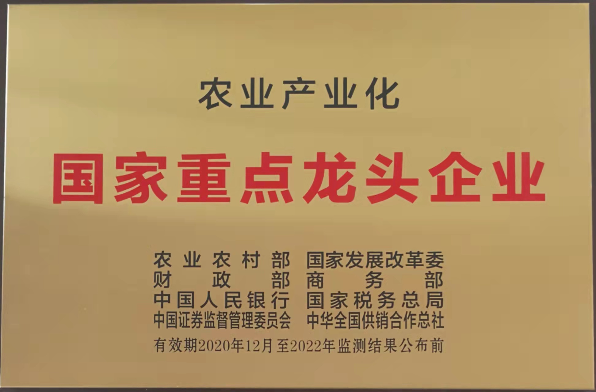 農(nóng)業(yè)產(chǎn)業(yè)化國家重點(diǎn)龍頭企業(yè)(有效期至2022年)